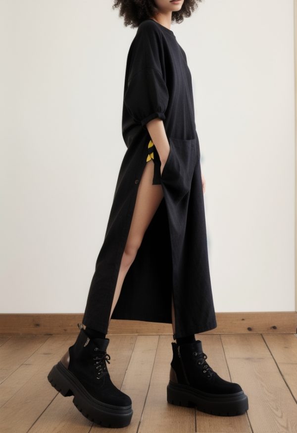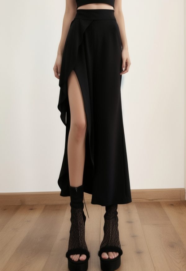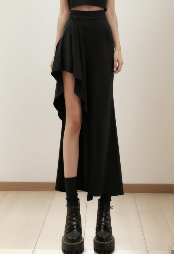 Style: Casual, Street Color: Black Fabric Content: Polyester, Spandex Fit Type: Regular Length: Midi Skirt Design: Elasticated Waistband, Irregular Hem